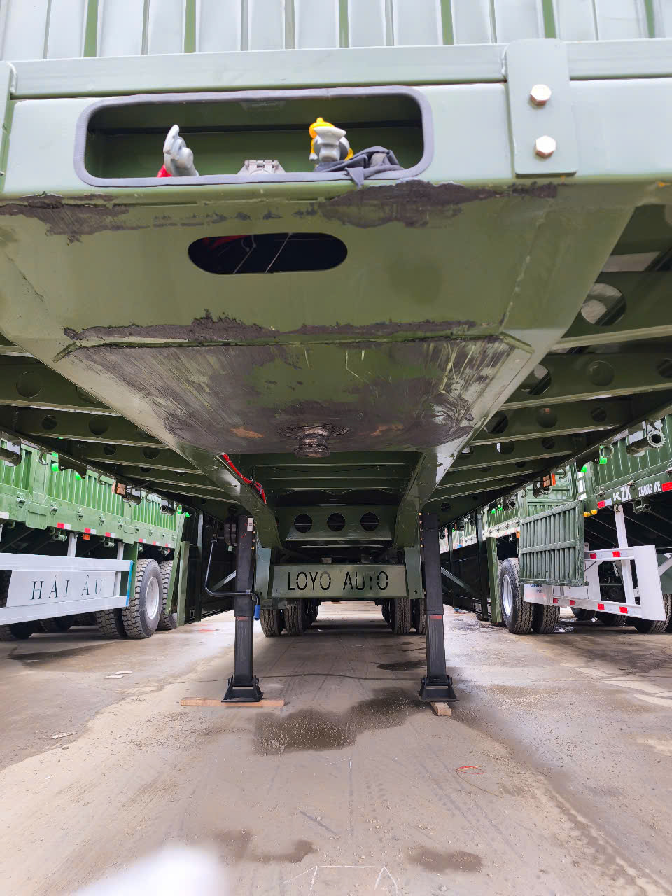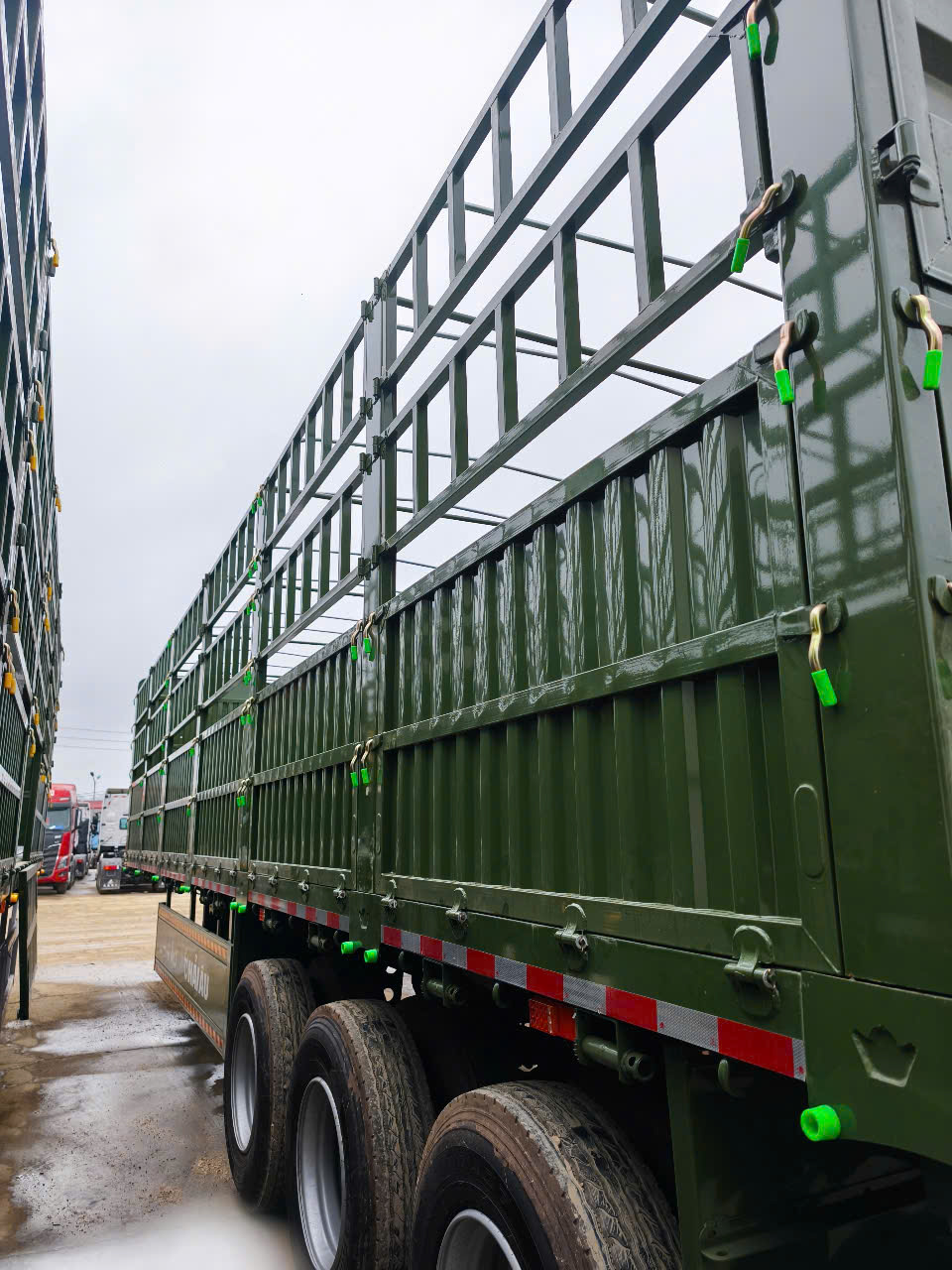 Mooc Lồng Lianyou cao 3.7m – 3 trục, tải 32.200 kg, tự trọng 7 tấn. Bửng cao 950 mm, rào 2 lớp, lốp 12R22.5, trục Lianyou, phanh WABCO, sơn tĩnh điện xanh bộ đội. Giao xe tận nơi – Hotline: 0905 590 950