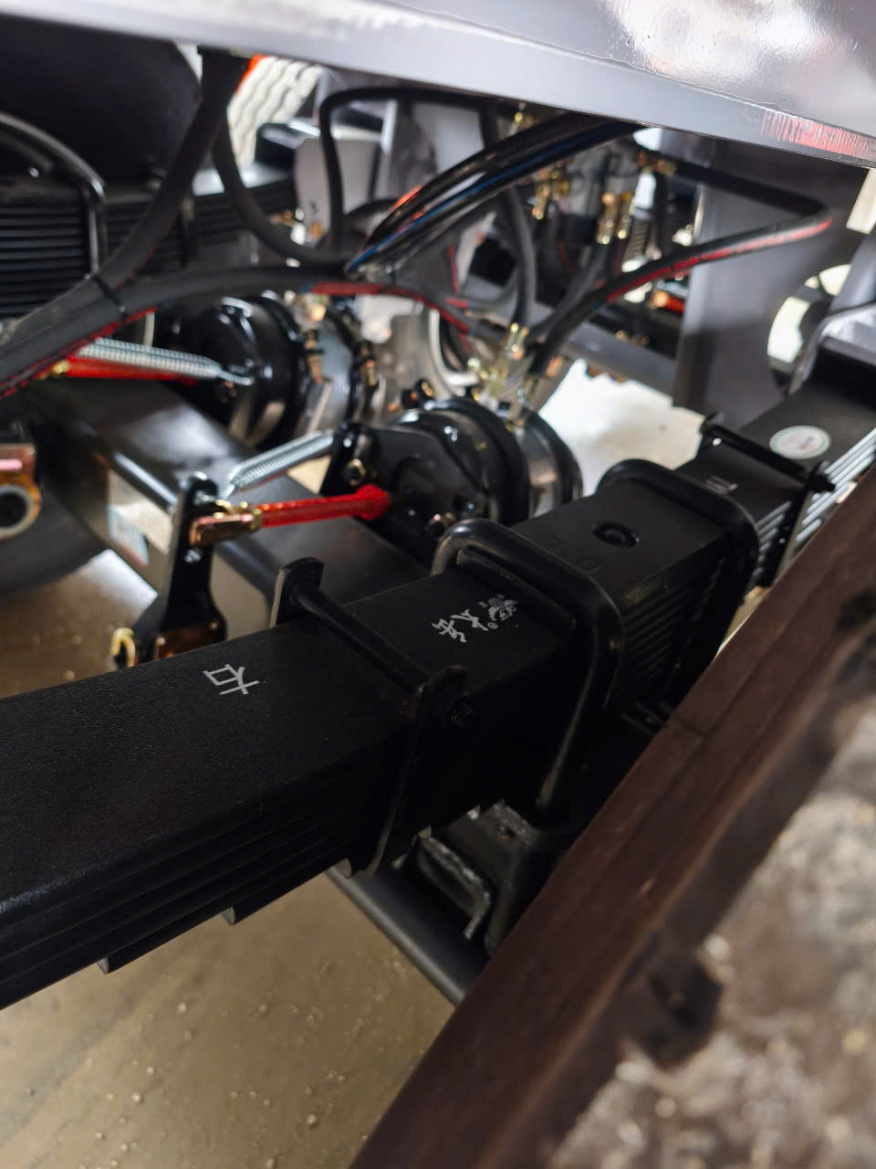 • Lá nhíp: Treo cơ khí, 10 lá, bản 90 mm, dày 13 mm – phù hợp đường công trình, tải nặng.