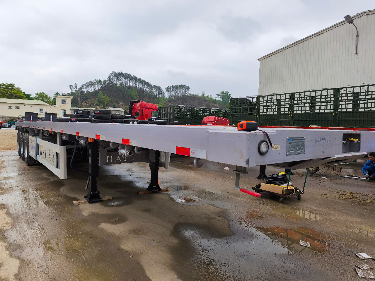 Mooc sàn 40ft lớp 12 CS ANTU 2025 – Chuyên chạy hàng nặng – khung H T700 cao 600mm, tải trọng 32 tấn, trang bị 12 khóa container, 3 trục 13T, lốp Kapsen HS 918, sàn thép dày 2.5 mm, phanh WABCO, đinh mooc JOST. Giao xe nhanh – Hotline: 0905 590 950