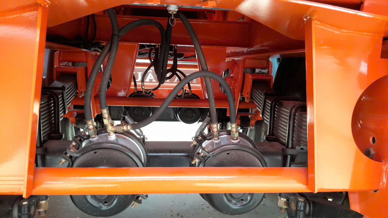 Lá nhíp: Treo cơ khí, 10 lá, bản 90 mm, dày 13 mm.