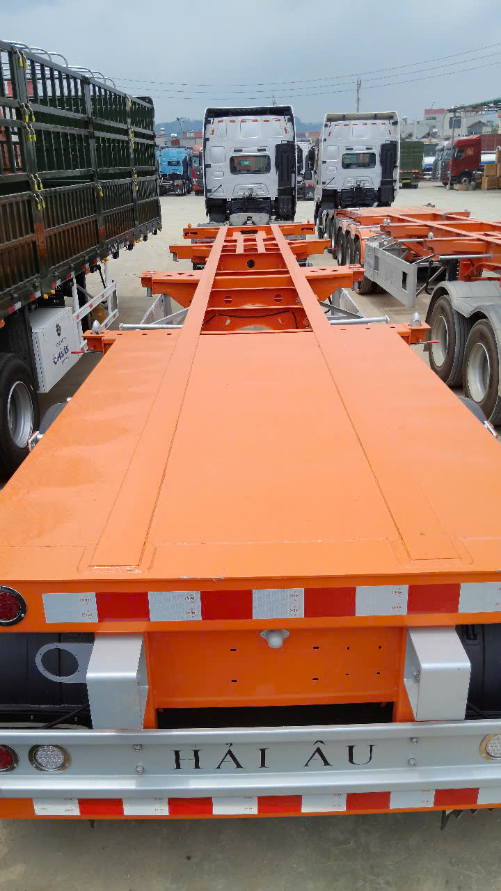 Mooc xương 40 feet 2 trục ANTU – khung thép T700 siêu bền, tự trọng chỉ 4.300 kg, tải trọng dự kiến 30 tấn. Trang bị 12 khóa container, 2 trục 13 tấn, lốp 12R22.5 gai sâu Double Coin, phanh WABCO, đinh mooc JOST, sơn tĩnh điện màu cam Lý tưởng cho vận chuyển container 20ft – 40ft, tiết kiệm nhiên liệu, vận hành linh hoạt. Giao xe sẵn toàn quốc – Hotline: 0905 590 950