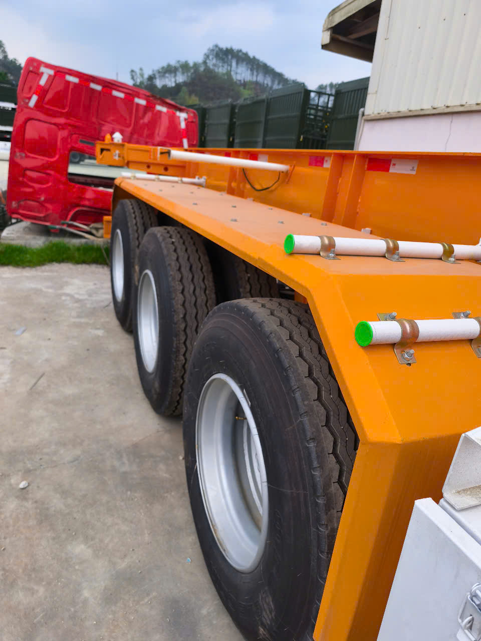 Mooc xương ZK 45ft 2025 – dài 13.75m, tải trọng 32.200 kg, 3 trục ZK, lốp 12R22.5 Double Coin, khung T700 chữ H, 12 chốt khóa container, phanh WABCO, sơn vàng tĩnh điện. Hotline: 0905 590 950